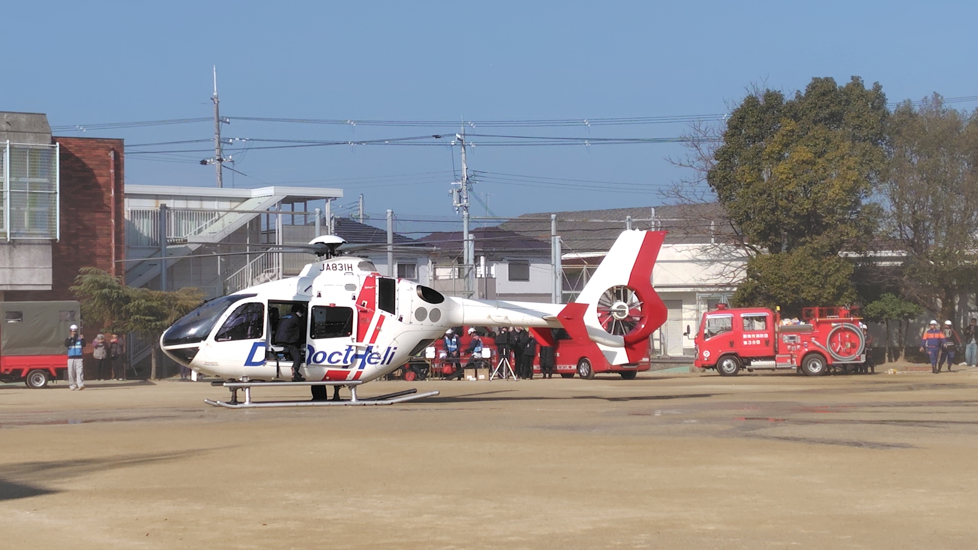 ドクターヘリが校庭に着陸する様子などを見学しました。